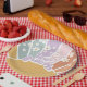 Zwei Groovy Retro Sunshine Rainbow Daisy Pappteller