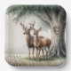 Ein Buck und ein Hirsch stehen anmutig neben einem alten Baum mit einem Herz und Namen, die in seinen Kofferraum eingemeißelt sind. Namen im Herzen können geändert werden.