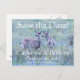 Schönes Hirsch in einer Wildblume Wiese Fotografie auf dieser Save the Date Hochzeitsankündigung Postcard.