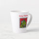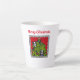 Diese Latte Tasse hat zwei schwarz-weiße Katzen, die in einem dekorierten Weihnachtsbaum klettern, mit einem goldenen Stern in einem extravaganten schwarzen Rahmen. Passen Sie den frohen Weihnachtstext oben mit der Vorlage an.