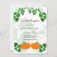 Halloween Pumpkins Thema Babydusche Einladung mit zwei warmen orange und grüne Wasserfarbe lackierten Kürbis Design.