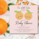 Zwei kleine Süssen sind auf dem Weg Babydusche Design mit bezauberndem kleinen Clementine Orangen Set auf einem hellrosa Hintergrund. Dreh unsere Einladung nach hinten, um eine Koordination mit Orangen-Set auf einem rosa Hintergrund. Besuchen Sie unseren Shop und sehen Sie sich unsere kleine Süsse Design Kollektion an.