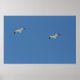 Zwei Möwen, die A3 Minimalistisches Poster tragen. Nur 2 Vögel und der blaue Himmel. Das Gefühl der Freiheit, das nach oben gleitet.