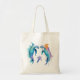 Abstrakte Abbildung mit zwei niedlichen blauen Delphinen mit orangefarbenen und lila Spritzern