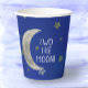 Party Becher mit einem Zwei Der Mond Thema für zweite Geburtstagsfeiern. Der graue Halbmond ist auf einem dunkelblauen Nachthimmelhintergrund mit silber und goldenen Sternen. Diese koordinieren sich mit den anderen Designs zum Thema Weltraum in meinem Shop...Klicken Sie, um die vollständige Sammlung zu sehen: https://www.zazzle.com/collections/119762226543392532