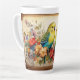 Zwei Parakets und Blume Milchtasse