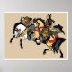zwei japanische Samurai-Pferde, die auf dem Pferd sitzen und mittelalterliche Lederrüstung tragen. Ostasiatische Krieger reiten Pony Pferde in der Galopp ... Samurai Thema... Graphic Art von Insima