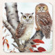 Digitales Bild von zwei Eulen in einem weißen Birkenbaum mit roten und orangefarbenen Herbstlauben.