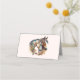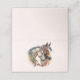 Platzkarten mit einem Pferdefoto. Tragen dekorativer Headbands. Umgeben von Federn und Blättern.
