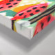Zwei Segelboote und Hütte II von Karen Fields. Zwei Segelboote schwimmen im Wasser, umgeben von bunten Blume und Hütten.