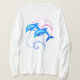 Zwei niedliche Springendelphine spielen im Ozean, mit hübschem Sonnenunterganghimmel und Sternen.