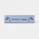 Dieser Schreibtisch oder die Namensschild ist hellblau mit zwei Springfunkeln wie tiefblaue Delphine mit weißen Bauchfäule an beiden Enden. Passen Sie Ihren Namen mit der Vorlage an.