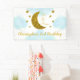 Zwei der Mond! 2. Geburtstag mit Goldmond und Sternen mit blauem Aquarellhintergrund