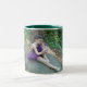 Kaffee Tasse mit Ballerina in lila, zweifarbiger Tasse in weiß/Jäger grün.