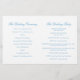 Doppelseitige, einfache zwei weiße Tauben mit zwei blauen Bändern Hochzeitsprogramm. Teil des Set der weißen Taube. Hübsche Pastelltöne in Blau und Weiß. Bearbeiten Sie dieses Hochzeitsprogramm mit Ihrem eigenen Namen, Terminen, Zeremoniell, Begleitern von Hochzeitsfeiern und vielen Dank . Einfaches und dennoch elegantes Programm ersetzt einfach den Sample-Text durch Ihre Hochzeitsinformationen und faltet die Programme bei Lieferung in der Mitte. Einzigartiges Design von Sarah Trett.