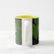 Zwei weiße Wasserlilien mit prächtigen gelben Mittelpunkten. Die perfekte Kaffee- oder Teezubereitung für jemanden, der Blume Lieben hat.
