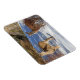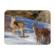 Zwei Weidelhirsche stehen auf einem schneebedeckten Feld neben den roten Buchsen.