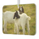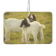 Woll, etwas süß zu deinem Auto hinzuzufügen? Diese zauberhaften braunen und weißen Boerziegen hängen zusammen auf einem Feld grünen Grases an einem Automobil-Luftkühler.