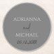 Zweigrau-Hochzeitspaare - Name und Datum Runder Pappuntersetzer
