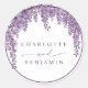 Fügen Sie Ihren Gastgeschenke Hochzeiten, Schreibwaren und Dekoration eine romantische, blumengeschmückte Touch mit diesem eleganten Hochzeitsaufkleber hinzu. Dieses Design mit üppig lila Wisteria-Weinen, die in einem anmutigen Bogen untergehen, eignet sich perfekt für Gartenfeiern, Weinberge und botanische Hochzeiten. Nutzen Sie diese klassischen Rundaufkleber für Kostüme, Umschläge, Siegel oder individuelle Dekoration, um Ihr Thema schön und schön zu Krawatte zu bringen.