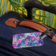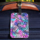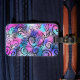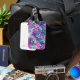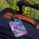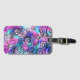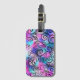 Ein lustiger kleiner Vogel und Blumengesteine auf rosa, lila und türkisfarbene Untergrund.
