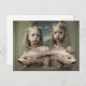 Zwillinge mit rosa Fisch-Horror Postkarte