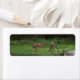 Zwei Baby-Schwanzrotwild und ihre Mutter, die einen Imbiss in unserem Seitenhof essen.