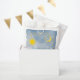 Eine köstliche Liebestasche für Ihre Dusche mit zwei Kindern. Eine Aquarellfarben dunkler Nachtuntergrund mit Sonne, Mond und Sternen, die zum Spielen kommen.