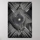Eine hypnotische optische Täuschung, bei der sich schwarze und weiße Linien ineinander verflechten und einen Wirbel bilden, der sich zu bewegen und zu atmen scheint. Das Kunstwerk ruft das Gefühl hervor, Dimensionen zu überschreiten und visuelles Chaos und geometrische Harmonie im perfekten Einklang zu bringen.
