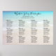 Poster für Hochzeitsgäste an einem Empfang am Meer. Strandsandboden mit tropisch blauem Wasser am oberen Ende. Dieses 23 x 36-Zoll-Sitzdiagramm hat schwarzen Text in beiden Schriften für bis zu 12 Tischnummern und gedruckte Texte für Gästennamen. Verheiratete Namen in elegantem und modernem, handgeschriebenem Schriftart mit ein oder zwei Zeilen für Datum und Ort der Feier. Jede Tischnummer hat Platz für bis zu acht Personen, oder weniger nach Bedarf. Die Tabellen sind horizontal aufgelistet, aber das lässt sich leicht ändern, indem man die Zahlen mit den Vorlagen ändert. Für weniger Tabellen löschen Sie einfach nach Bedarf die Abschnitte, und behalte das Aussehen symmetrisch. Aktualisieren Sie das Papier, wenn Sie möchten.