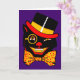 Vintager Halloween-Dekor, der eine schwarze Katze mit einer Richtung der Art kennzeichnet. Und ein Monocle.